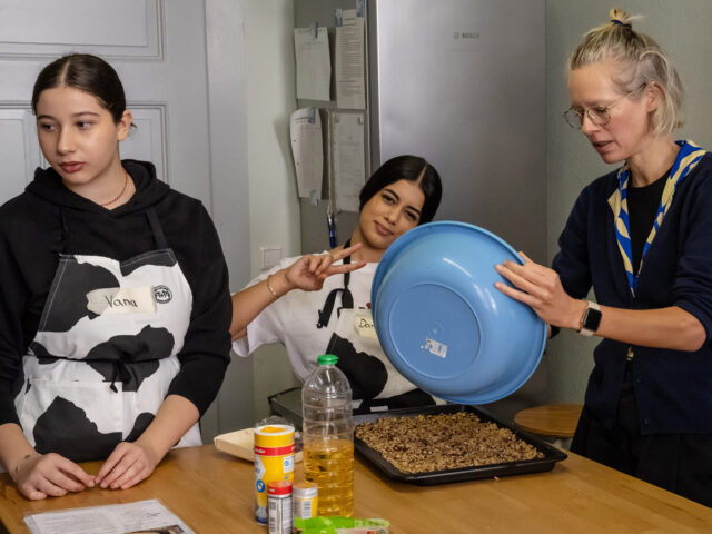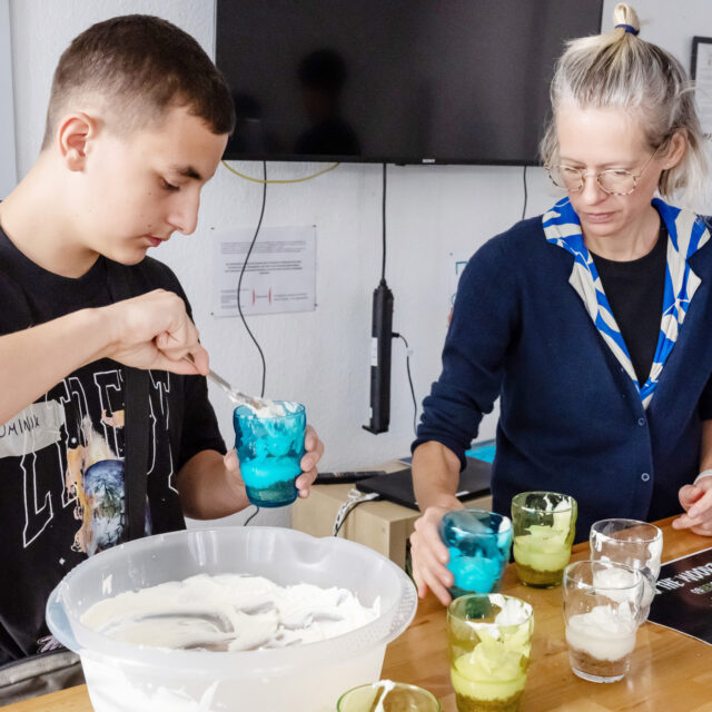 „Hammer!” Das dachten wir, als wir die Räume beim Recherchebesuch des Workshops betraten. Sofort stieg uns der Duft von Minze und warmer Milch in die Nase. Es gab zwei Sofas und drei Sessel, wo Schüler*innen saßen. In der Mitte stand ein Billardtisch mit Billardkugeln. Weiter hinten war ein Tresen mit einer heißen Platte, wo gerade etwas gekocht wurde. Dahinter war ein weiterer Raum mit Küchengeräten und vielen Mitschüler*innen. Sie machten während unseres Besuches eine Art Brot – in einer Pfanne. Rechts vom Tresen aus war eine weitere gemütliche Ecke mit einem Sofa und Sesseln. Schüler*innen saßen und lachten, während andere wiederum in der Küche standen und kochten. Die Stimmung war gelassen und locker. Ein Mädchen kam auf uns zu und gab uns während des Interviews ein Pfannenbrot. Es war sehr lecker und warm. Alle Workshopleiter*innen waren während des Interviews aufmerksam und guckten dennoch zu den anderen Schüler*innen. Sie konnten sich aber trotzdem gut auf die Fragen fokussieren. Auch die Schüler*innen, die wir interviewten, waren sehr gesprächig. Angenehm für uns Reporterinnen.