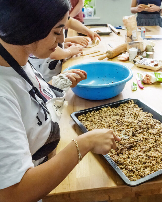 Melanie: Am Mittwoch haben wir Käsekuchen, Käsekapseln, Müsliriegel und goldene Milch gemacht.