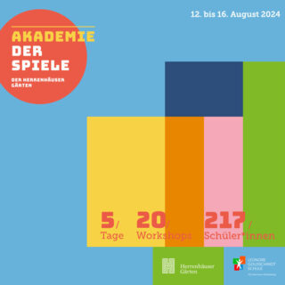 Die Akademie der Spiele in den Herrenhäuser Gärten bringt mehr als 200 Schüler*innen des 9. Jahrgangs und Berufswelten an besonderen außerschulischen Lernorten kreativ zusammen. Im Rahmen einer Projektwoche nehmen die Lernenden eine Woche lang an selbst gewählten Workshops teil. Die thematische Vielfalt der 20 Workshops ist immens und bietet die Chance zu einem mehrdimensionalen, handlungsorientierten und ganzheitlichen Lernen.